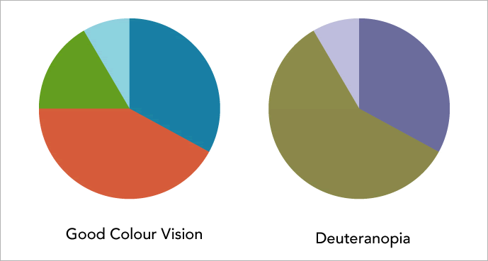 The darker shades of red color are gray-black. Normally it is hard for people who are suffering from color blindness to distinguish different graphs and charts.
