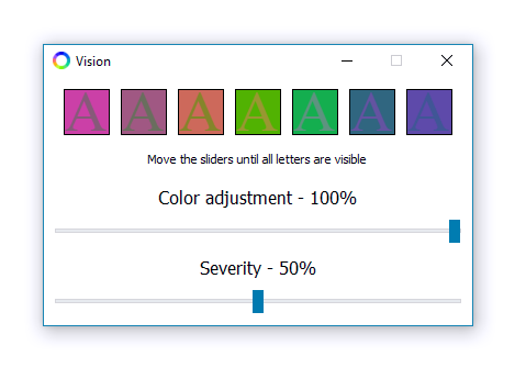 Vision will improve your screen colors and contrast. Different presets will make colors sharper. You will be able to see and distinguish colors better.